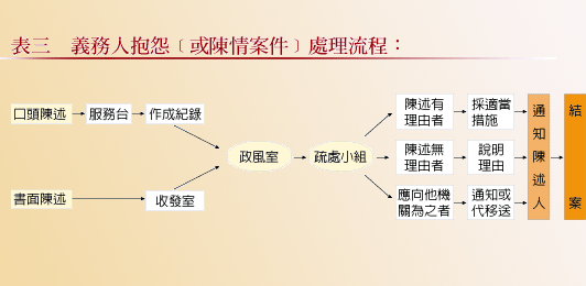 表三:義務人抱怨﹝或陳情案件﹞處理流程